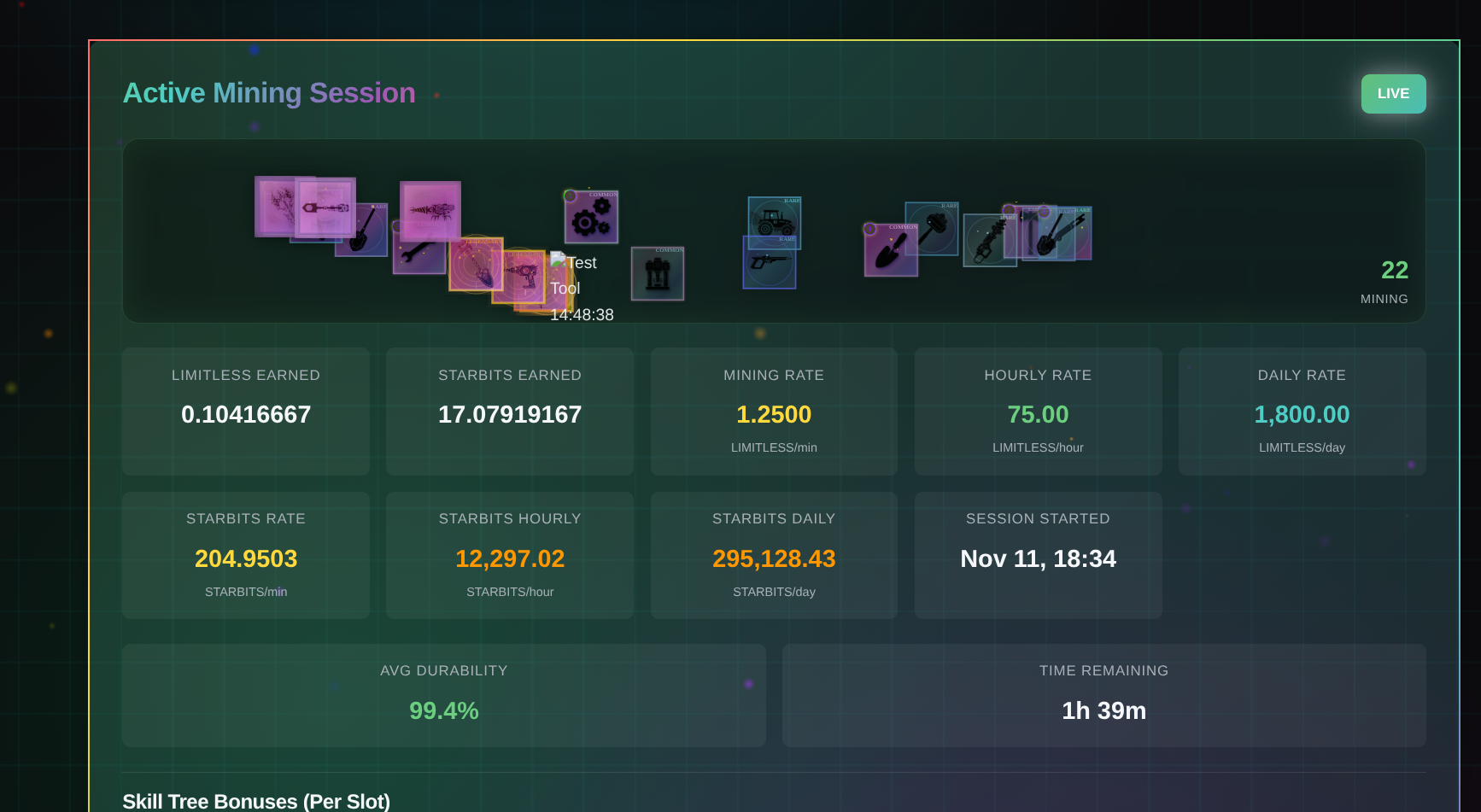 A unique mining game thats in development that currently rewards users in LIMITLESS and STARBITS